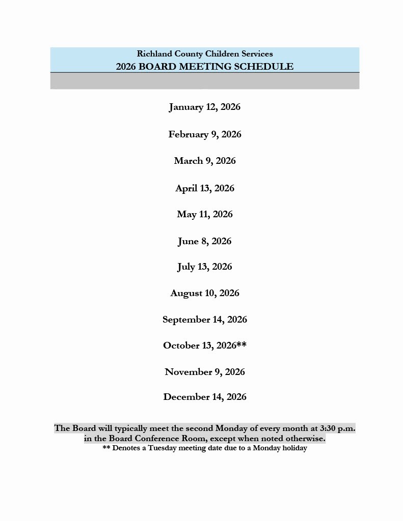 RCCS Board Meeting Schedule
