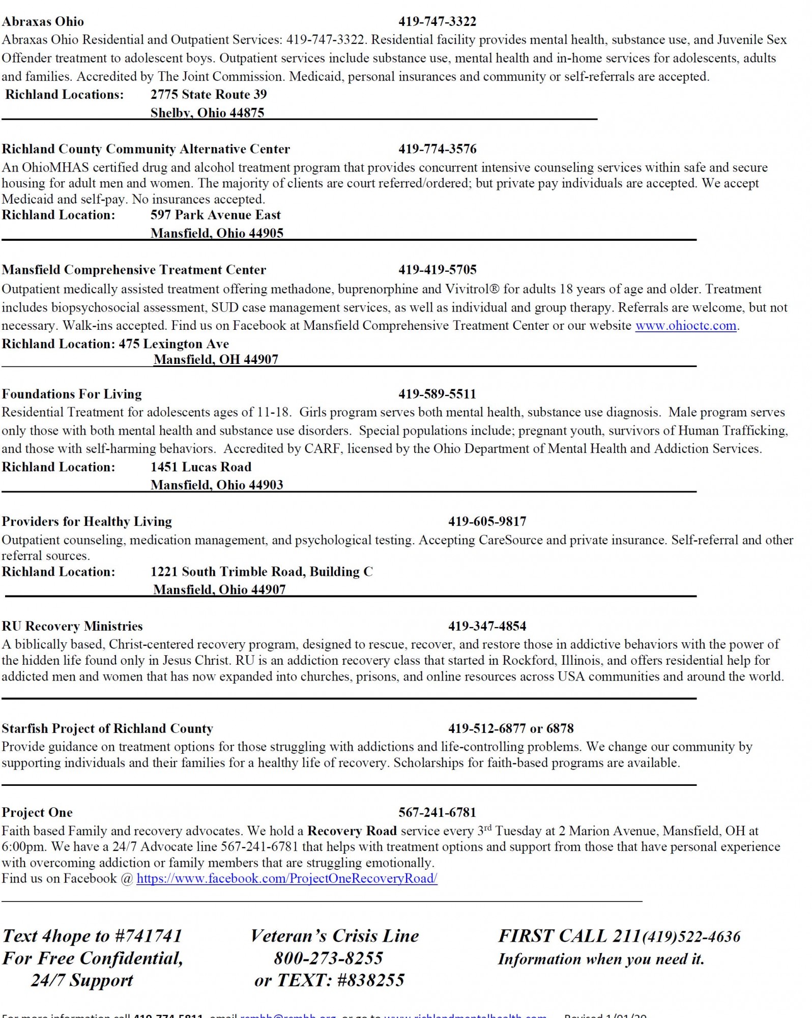 Community Resources - Mental Health and Addiction Recovery Services
